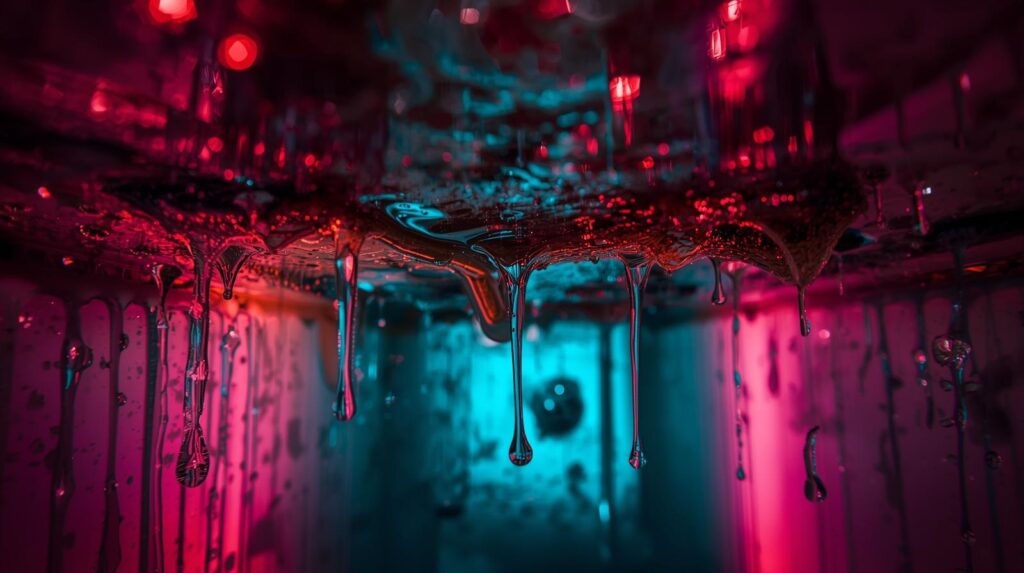 Awaiting the neighbour’s usage pattern to reproduce the issue and confirm colour traces on the ceiling below.