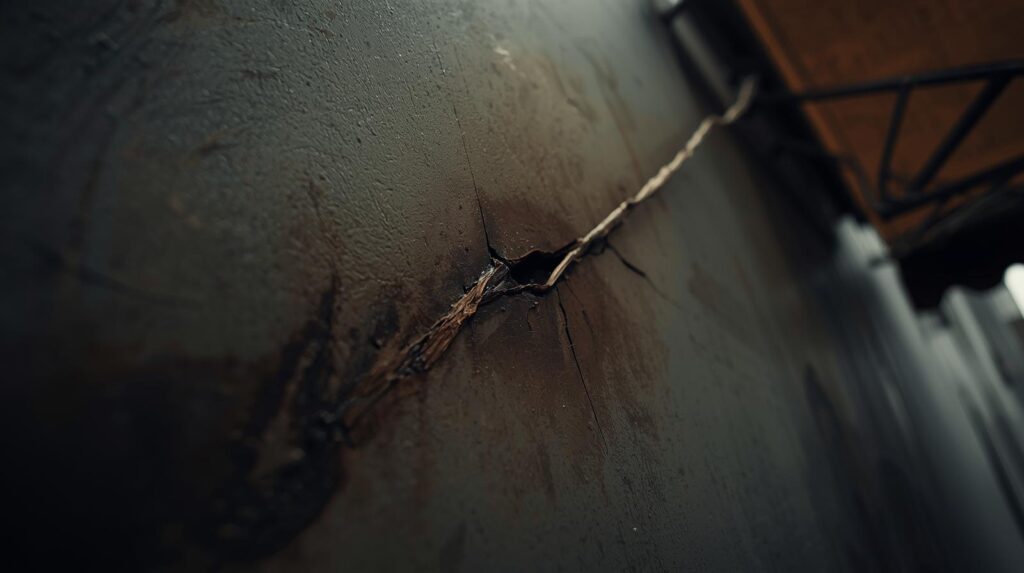- Thermal scanning mapped damp along that central wall, suggesting moisture travelling from upper levels.