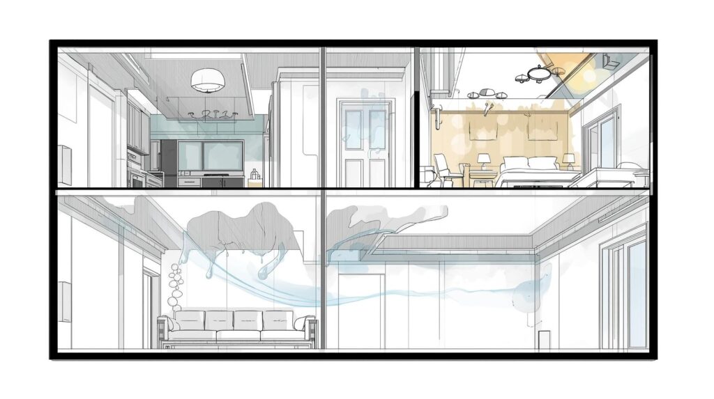 We performed a shower flood test—and water appeared below in the neighbour’s bathroom. Meanwhile, common areas showed ingress through the façade.
